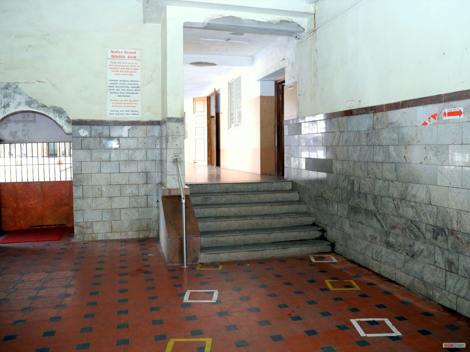 - Caution Deposit of Rs. 10,000 has to be paid. This is will be returned to the person making the booking, 3 days after the programme, after ascertaining no damage or loss has been caused to the premises or fittings. The responsibility of clearing the debris of the decorations, the food plates or plantain leaves rests on the person who books the hall. In cases where the debris is left behind by the decorator, caterer, a minimum of Rs. 5,000 or more will be deducted from the caution deposit. Estimate of damage made by the management is final. The party is responsible for the damage made by the Caterer or any other contractor.